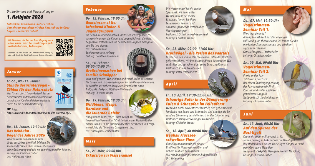 Im LBV Pfaffenhofen hat sich eine Gruppe an begeisterten Naturfotograf*innen zusammen gefunden, die den AK Naturfotografie aus der Taufe gehoben haben. Wir treffen uns in lockerer Reihenfolge und gehen gemeinsam auf Fotopirsch oder treffen uns zu Bildbesprechungen, ganz nach Bedarf. Wer sich diesem AK anschließen möchte, meldet sich bitte bei dorothee.bornemann@lbv.de