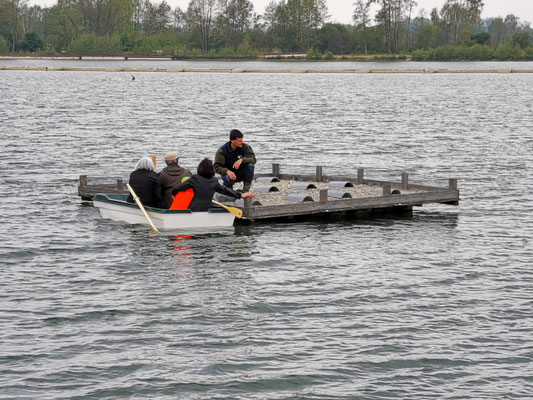 Wir haben ein Boot zur Betreuung der Flösse...